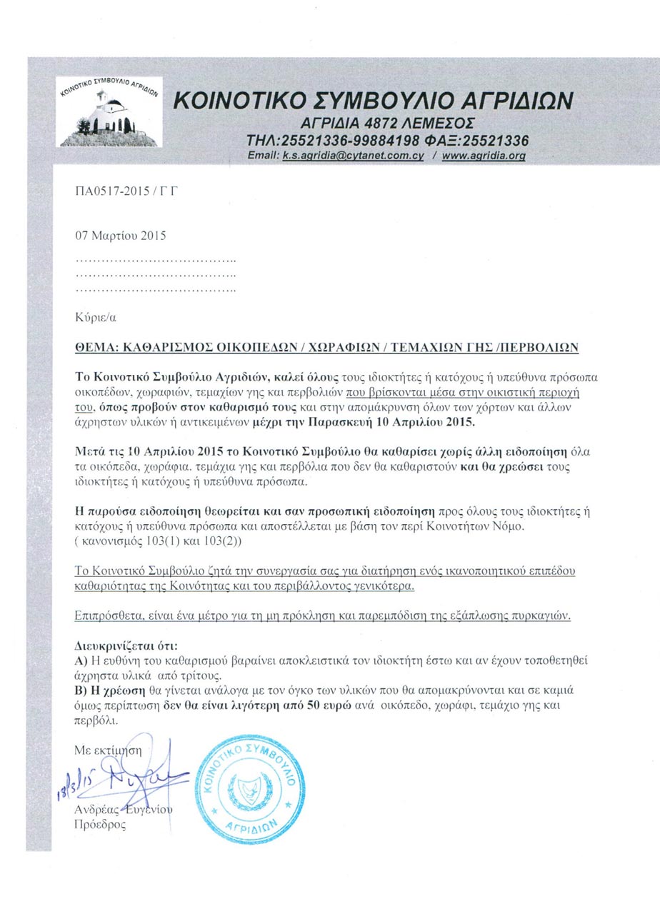 ΚΑΘΑΡΙΣΜΟΣ ΟΙΚΟΠΕΔΩΝ / ΧΩΡΑΦΙΩΝ / ΤΕΜΑΧΙΩΝ ΓΗΣ / ΠΕΡΒΟΛΙΩΝ