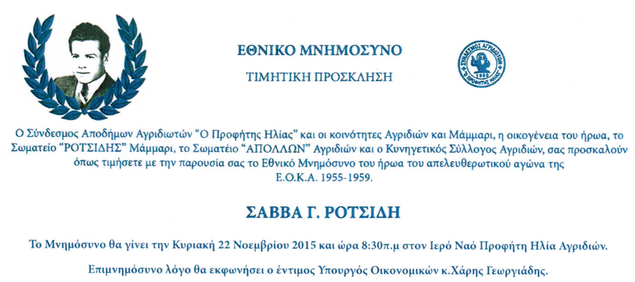 ΕΘΝΙΚΟ ΜΝΗΜΟΣΥΝΟ ΗΡΩΑ ΣΑΒΒΑ ΡΟΤΣΙΔΗ – ΤΙΜΗΤΙΚΗ ΠΡΟΣΚΛΗΣΗ
