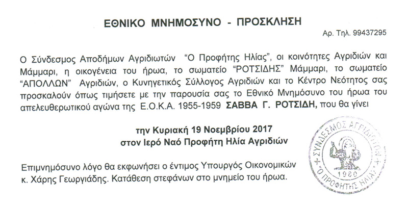 Εθνικό Μνημόσυνο Ήρωα Σάββα Ροτσίδη (Αγρίδια 19/11/2017)