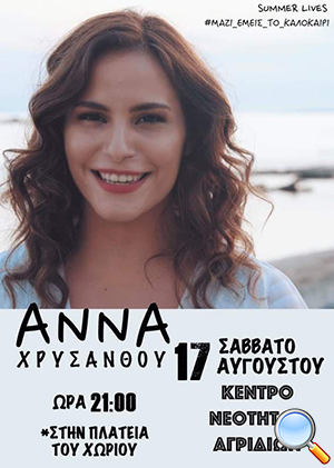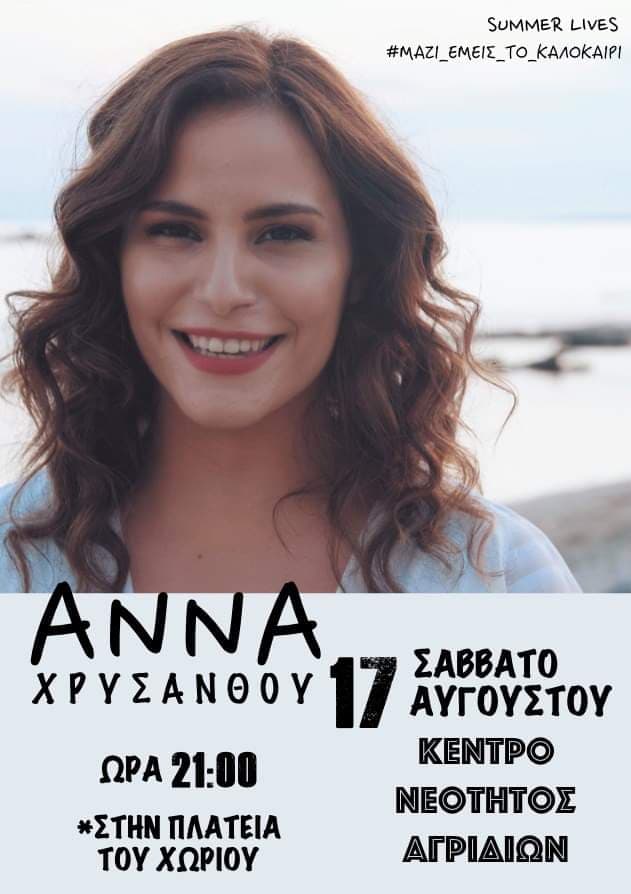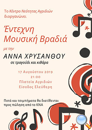 Έντεχνη Μουσική Βραδιά με την Άννα Χρυσάνθου 17/8/2019